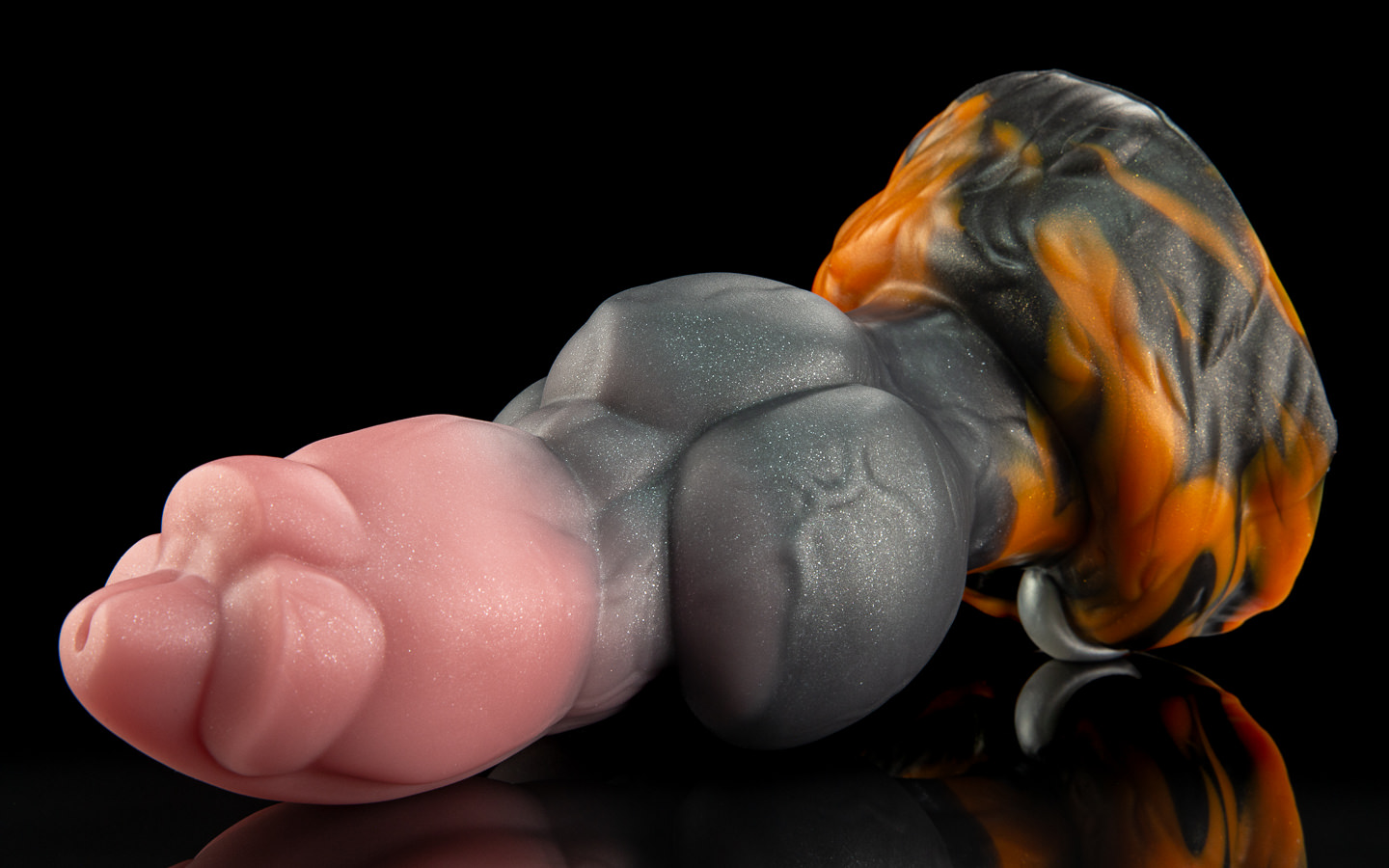 The shaft fades from peach to graphite and the base is a fiery swirl of orange and Jet. Can you take em' all?