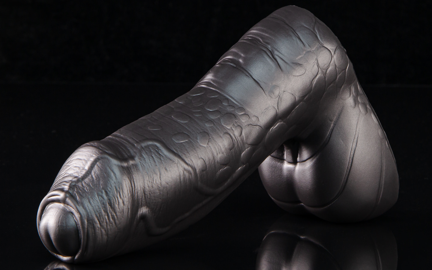 The wrinkles then transition to a scaled texture further down, making him more interesting to explore when hilted; his plated balls make a good place to sit once you’re at the bottom!